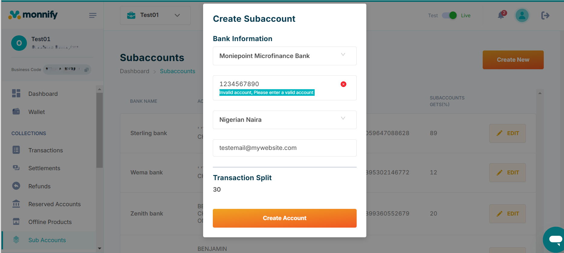 This means you can specify what percentage of incoming payments should go into your default settlement account and what percentage of payments should also go into the sub-account you’ve created. You can create sub-accounts by integrating with the Monnify Create Sub-Account Endpoint